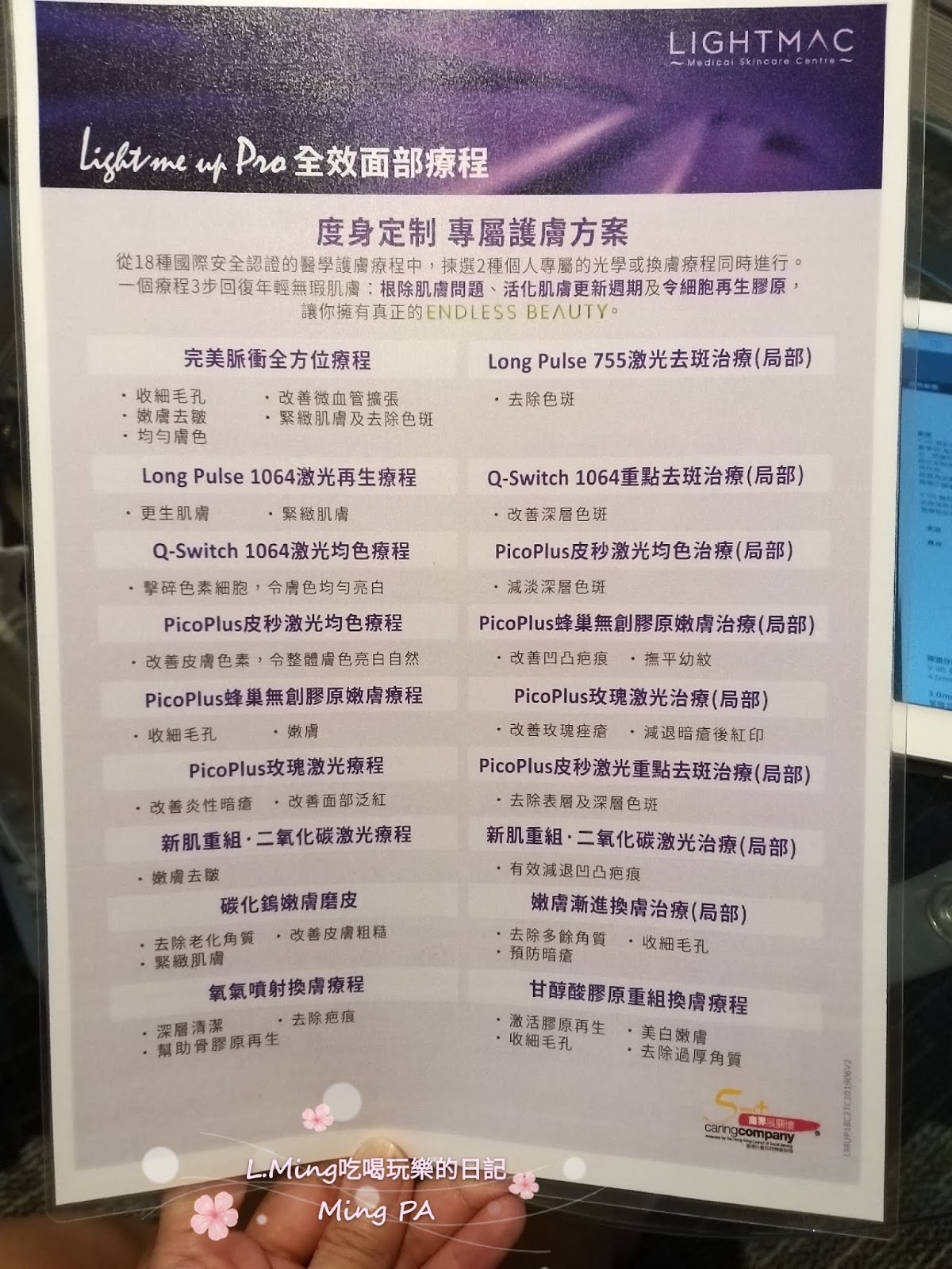 原來,LightMAC的醫學美容療程每次也可以選擇兩款,包括光學或換膚療程。